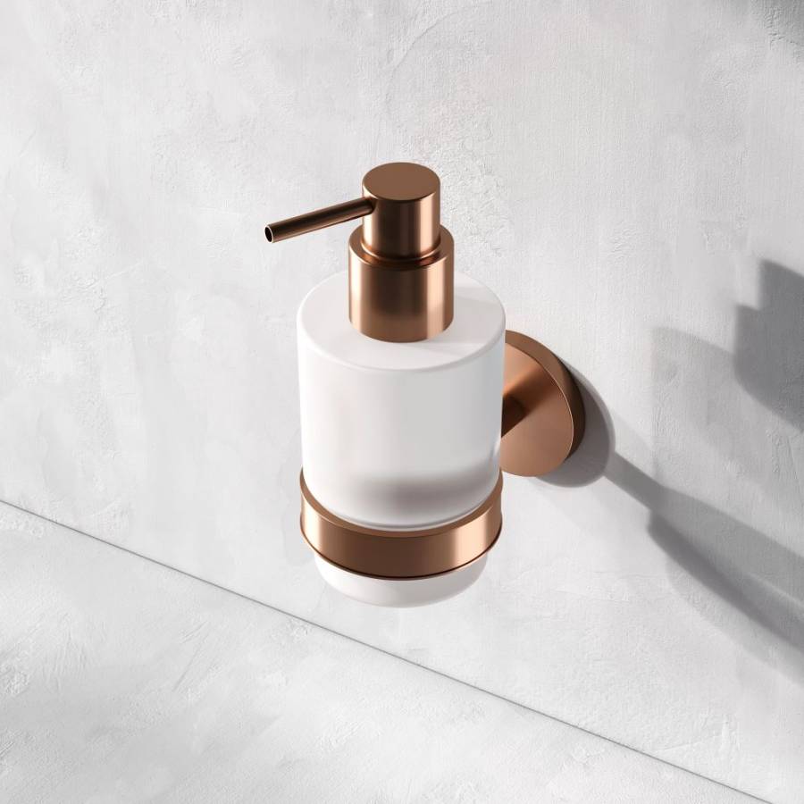 Диспенсер для жидкого мыла X-Joy – незаменимый аксессуар для вашей ванной. Подвесная установка делает этот продукт невероятно удобным для использования. Продукт выполнен из сплава металлов высочайшего качества с матовым покрытием розового золота устойчивым к механическим повреждениям и матового стекла._x000D_