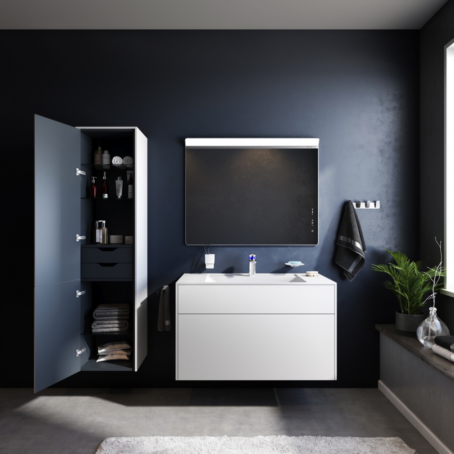 Ультратонкая раковина эргономичной формы с покрытием из мрамора идеально сочетается с мебельной базой