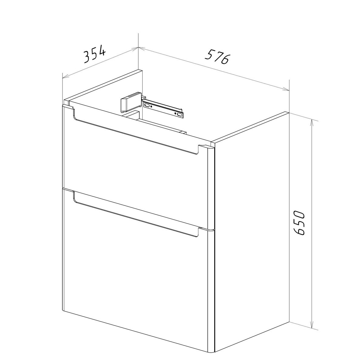 •Габариты без раковины (ШГВ): 576х354х650 мм;