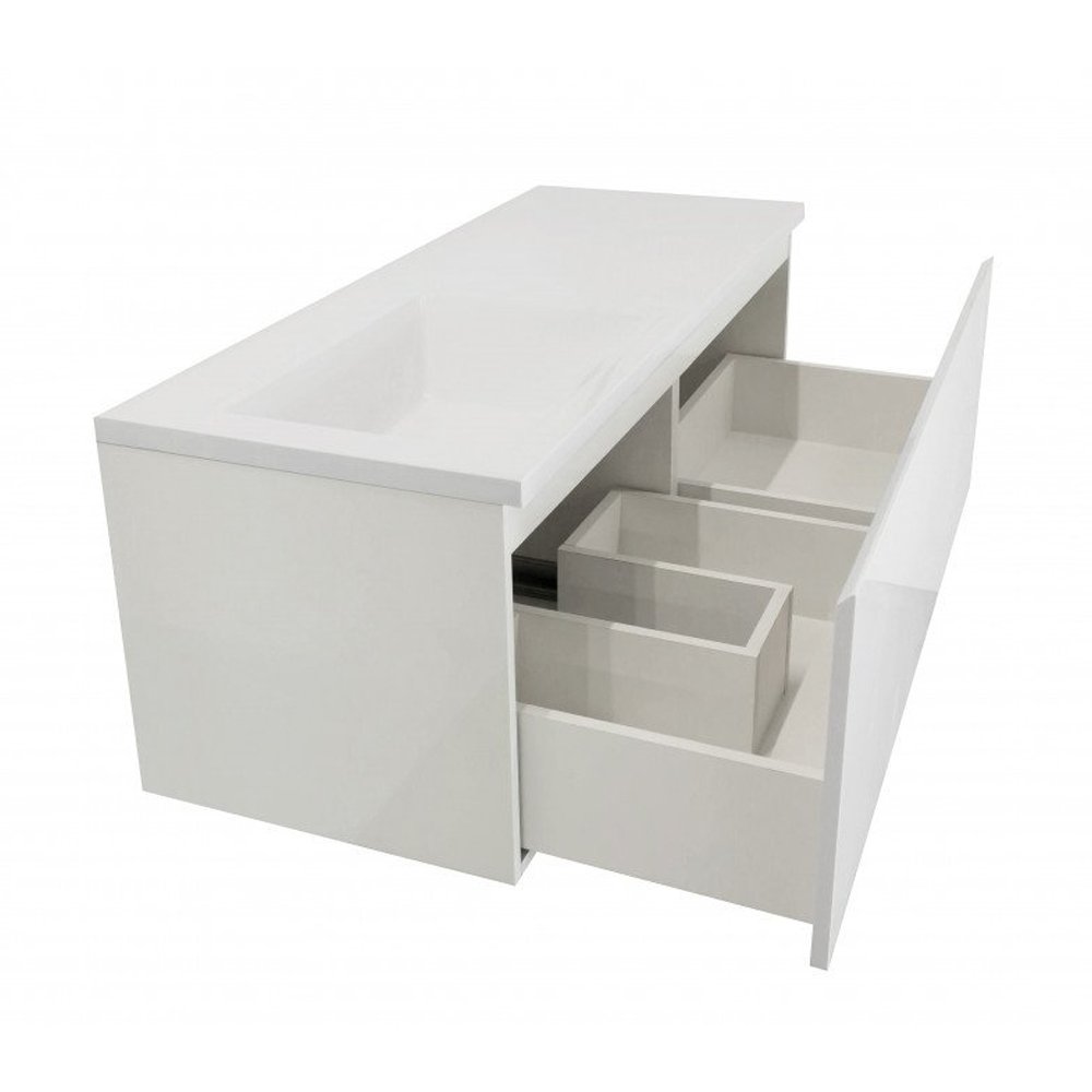 Мебель выполнена из влагостойкого ЛДСП и качественного MDF с использованием эмали RENNER (Италия). Ящики снабжены системой плавного закрывания. Для мебели используется фурнитура BLUM (Австрия)