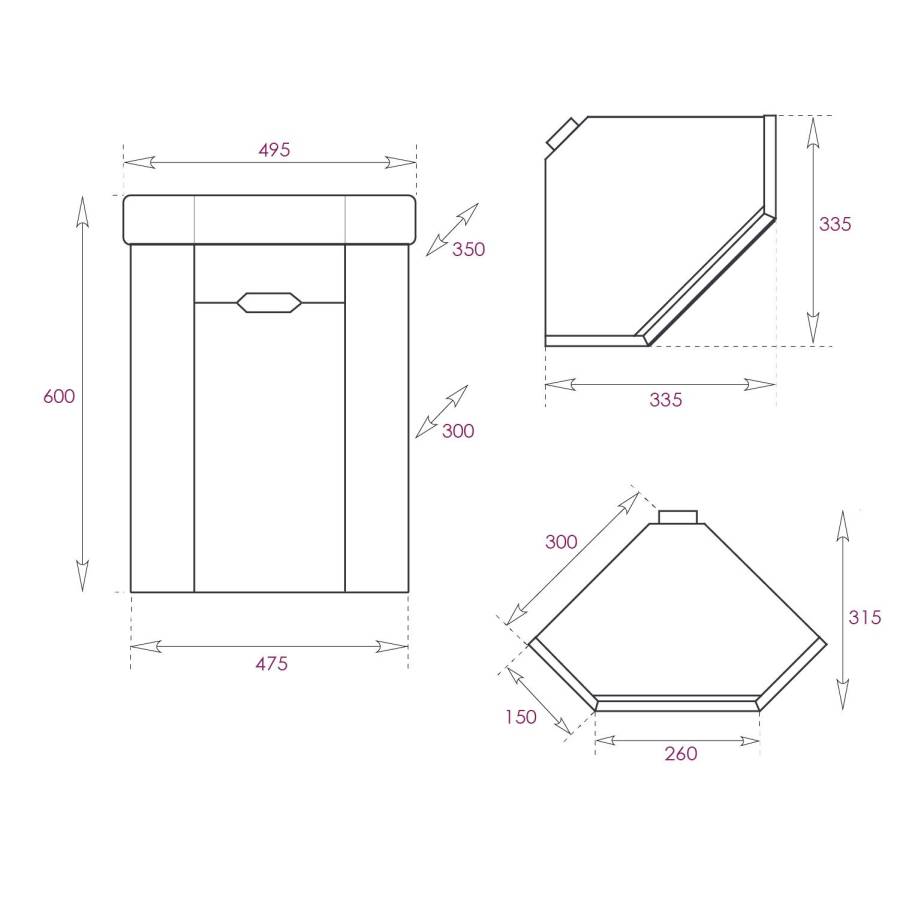 Размеры тумбы без учета раковины и ножек 47x31x50 см.