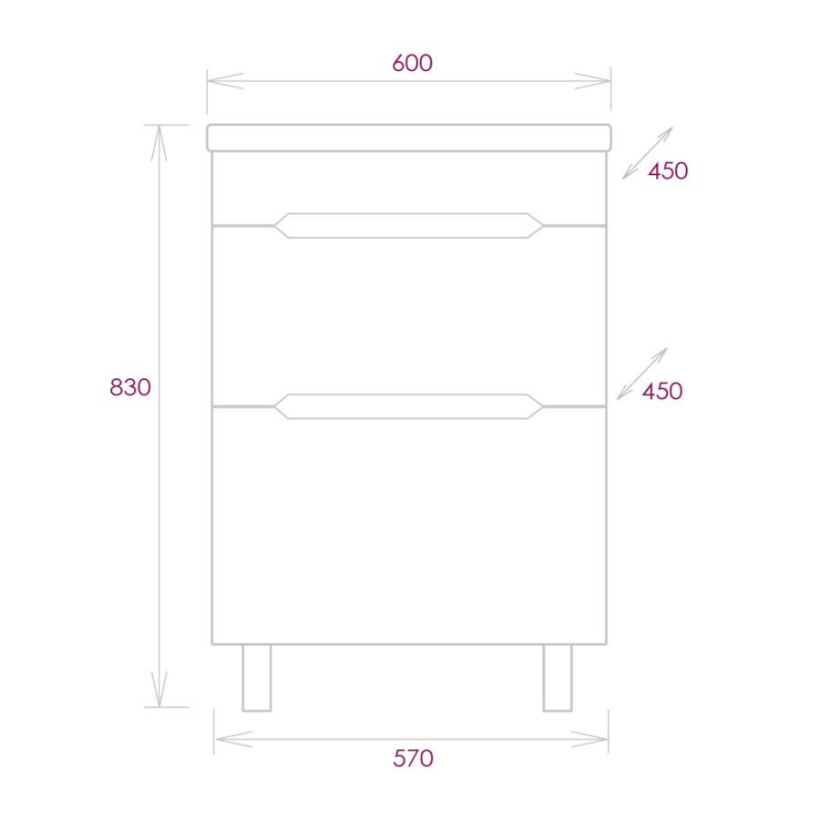 Размеры тумбы без учета раковины 57x45x66 см.