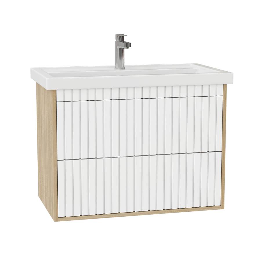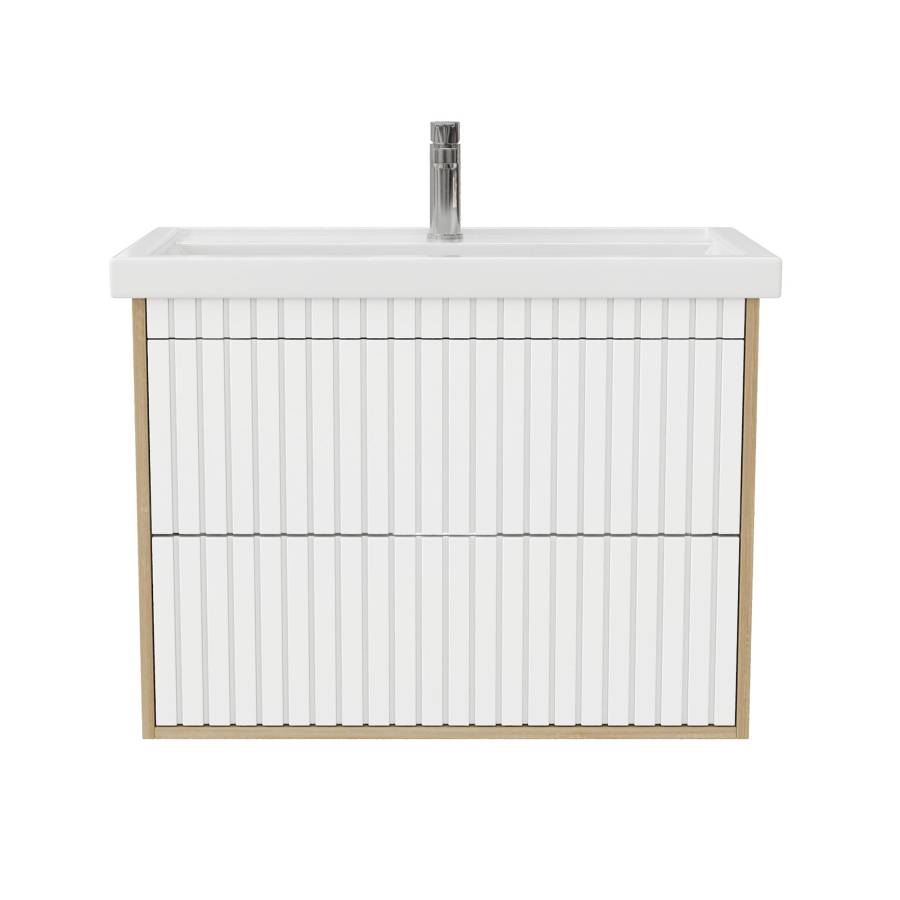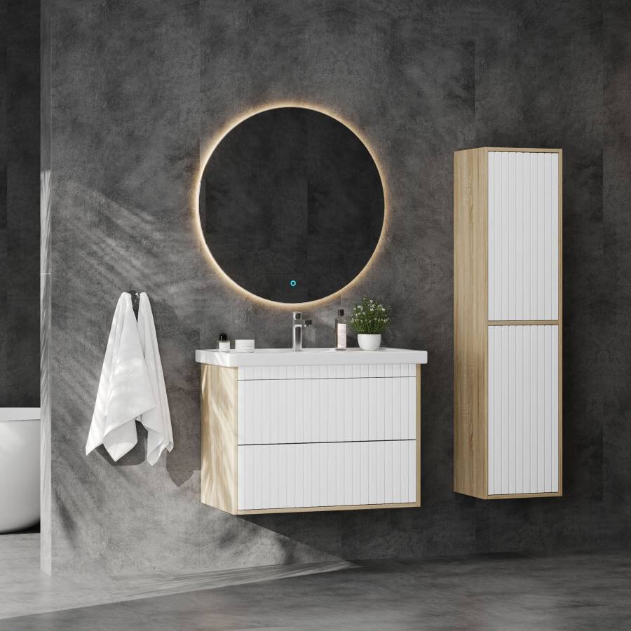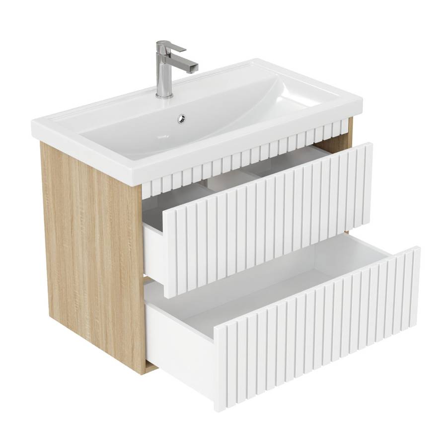Корпус тумбы выполнен из ЛДСП, фасад - из ЛМДФ в пленке, устойчивых к механическим воздействиям, перепадам температур и высокой влажности.