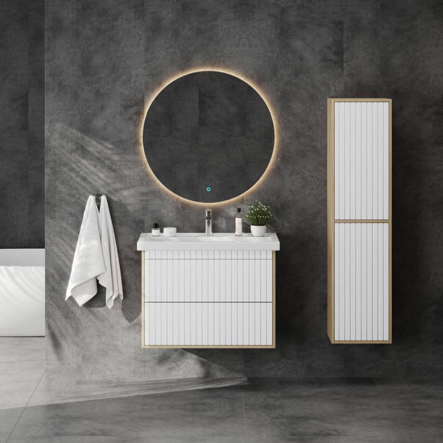 Рифленый серый матовый фасад с покрытием SoftTouch и корпус цвета дуба с роскошной текстурой подчеркнет изысканный вкус владельца и станет центральным элементом декора.
