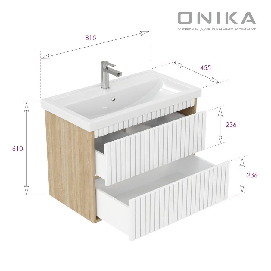 Размеры тумбы без учета раковины 77x44x57 см.