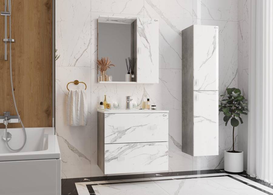 Тумба надежно крепится к стене и не занимает место на полу, не создавая при этом сложностей в уборке помещения.