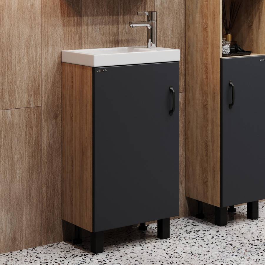 Размеры тумбы без учета раковины и ножек 45x26x68 cм.