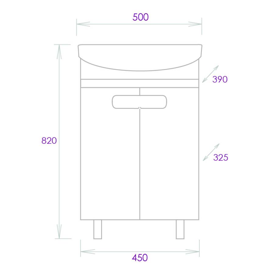 Размеры тумбы без учета раковины и ножек 45x32x68 cм.