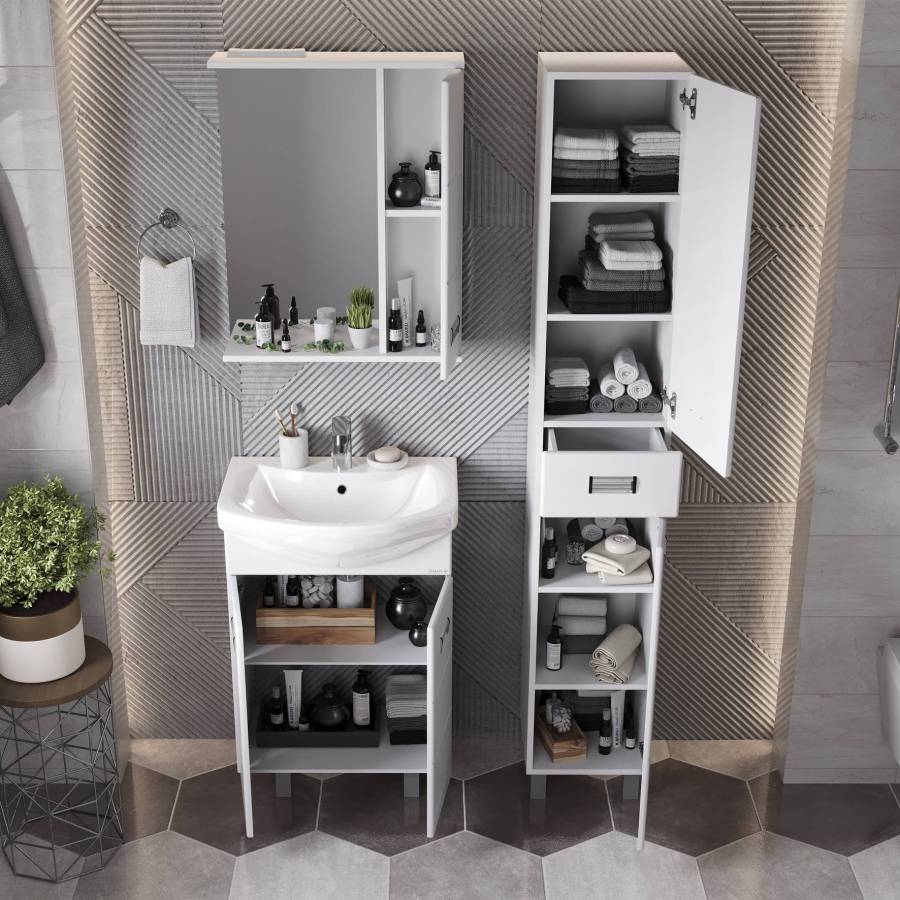 Глянцевый белый цвет, ненавязчивая горизонтальная фрезеровка, стильная врезная хромированная фурнитура и аккуратная лаконичность - все это позволяет коллекции Балтика стать центральным звеном интерьера ванной комнаты.