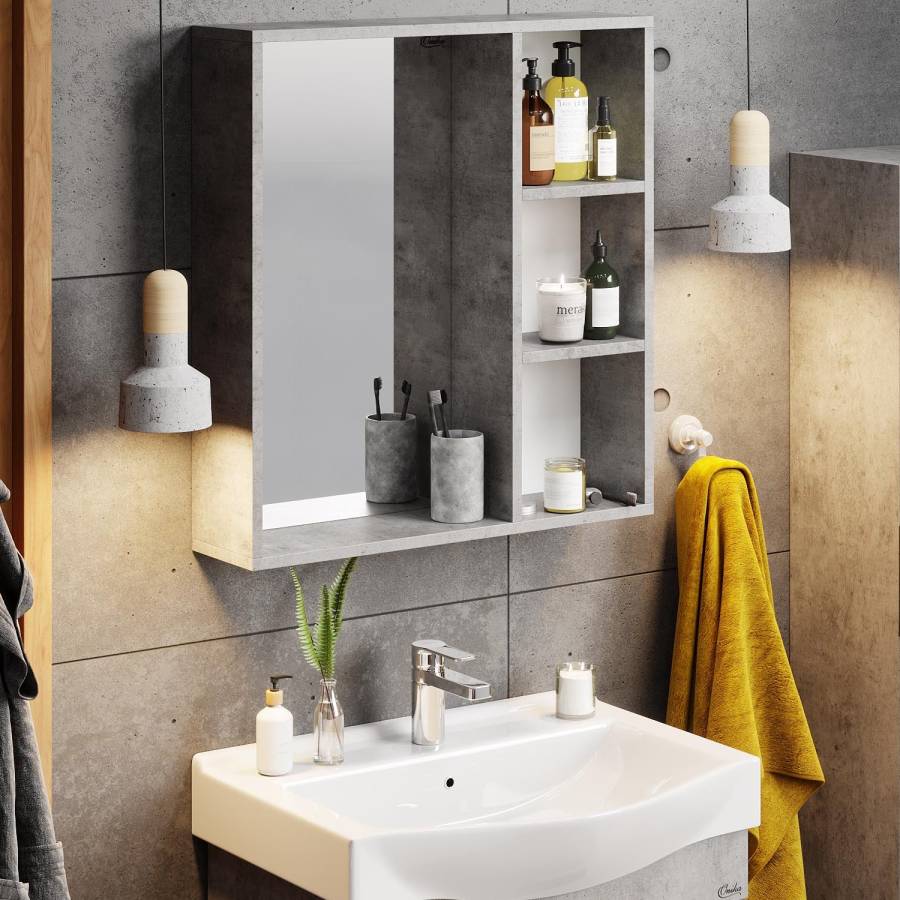 3 открытые полки обеспечивают быстрый доступ к часто используемым аксессуарам, место под зеркалом предназначено для косметических средств или декоративных элементов.