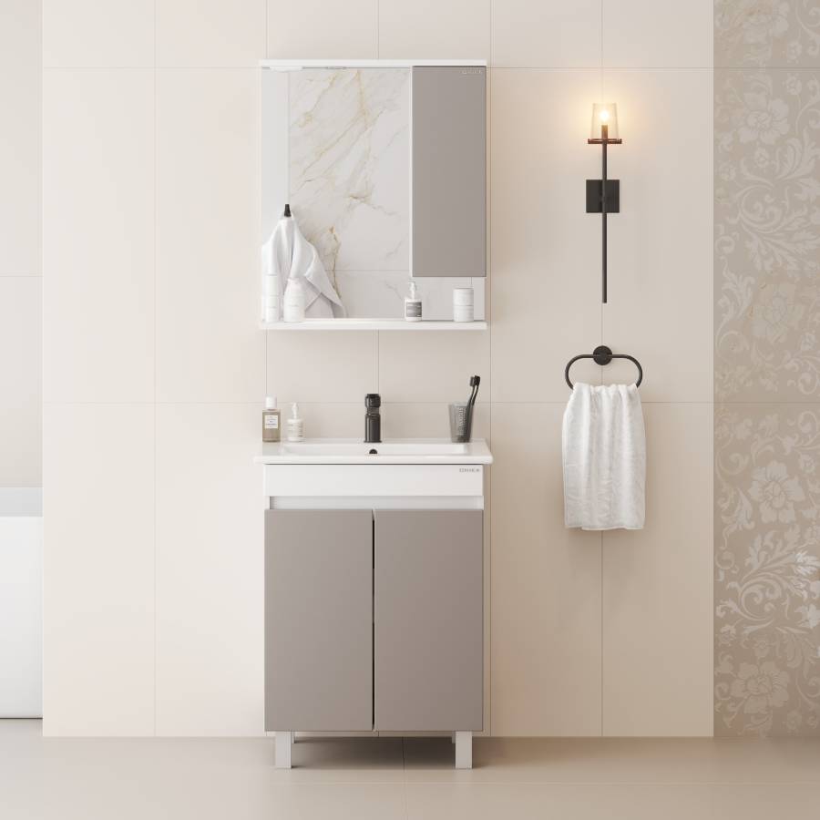 Корпус шкафа-зеркала выполнен из ЛДСП, фасад - из ЛМДФ в матовой пленке, устойчивых к механическим воздействиям, перепадам температур и высокой влажности.