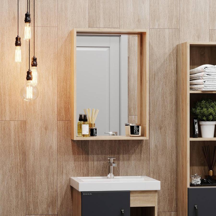 Зеркальный шкаф выполнен из ЛДСП, устойчивой к механическим воздействиям, перепадам температур и высокой влажности.