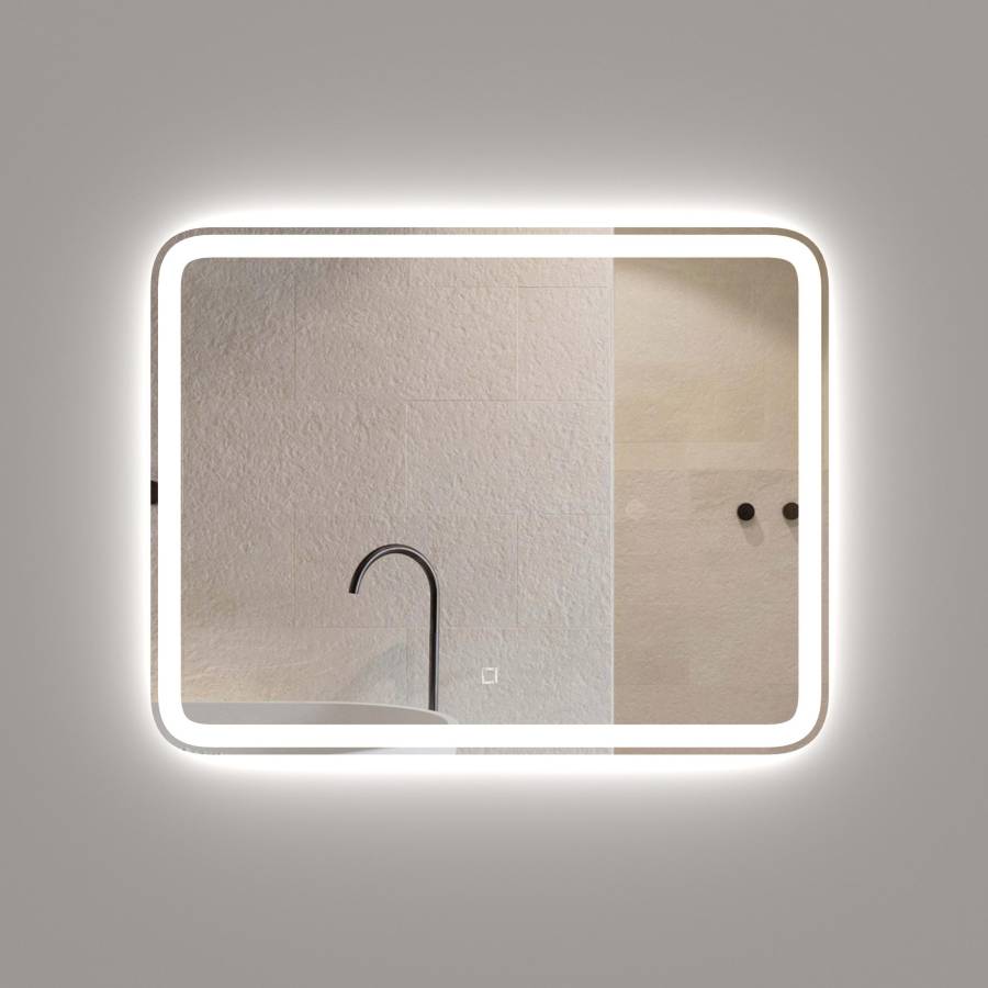 Яркость LED-подсветки регулируется при помощи встроенного диммера и сенсорной кнопки на поверхности зеркала.