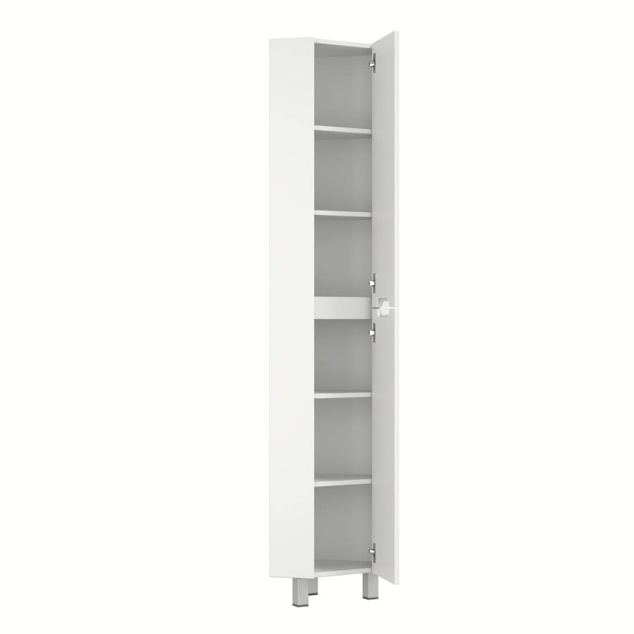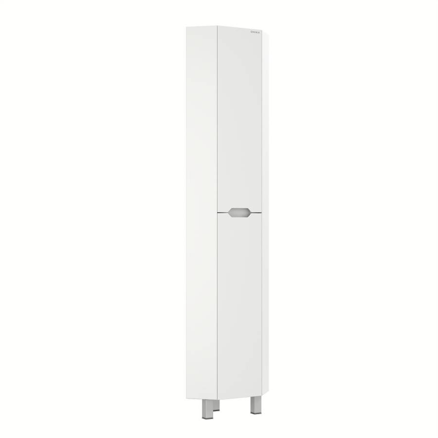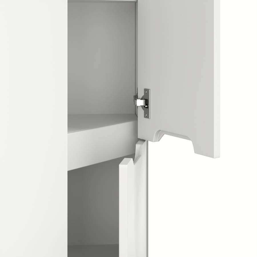 Пенал имеет два отделения за распашными дверцами с доводчиками, полки внутри регулируются по высоте. Ручки, изящно интегрированные в фасады, позволяют сделать эксплуатацию мебели более удобной и практичной.