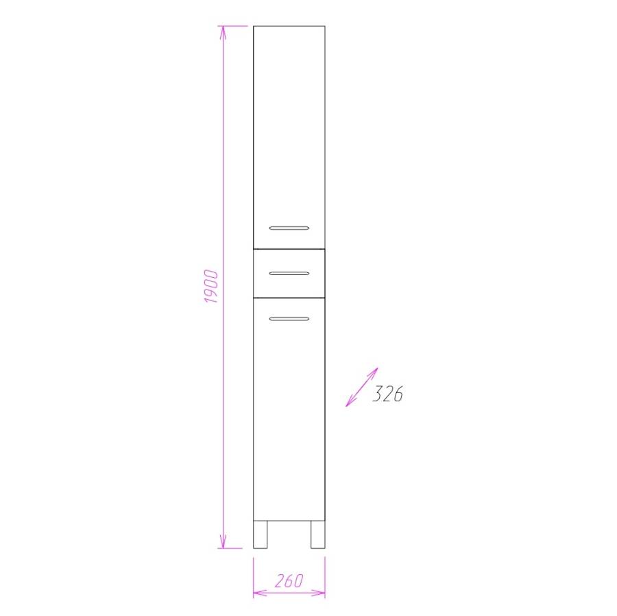Корпус пенала выполнен из ЛДСП, фасад - из МДФ в пленке, специально предназначенных для использования в условиях высокой влажности.