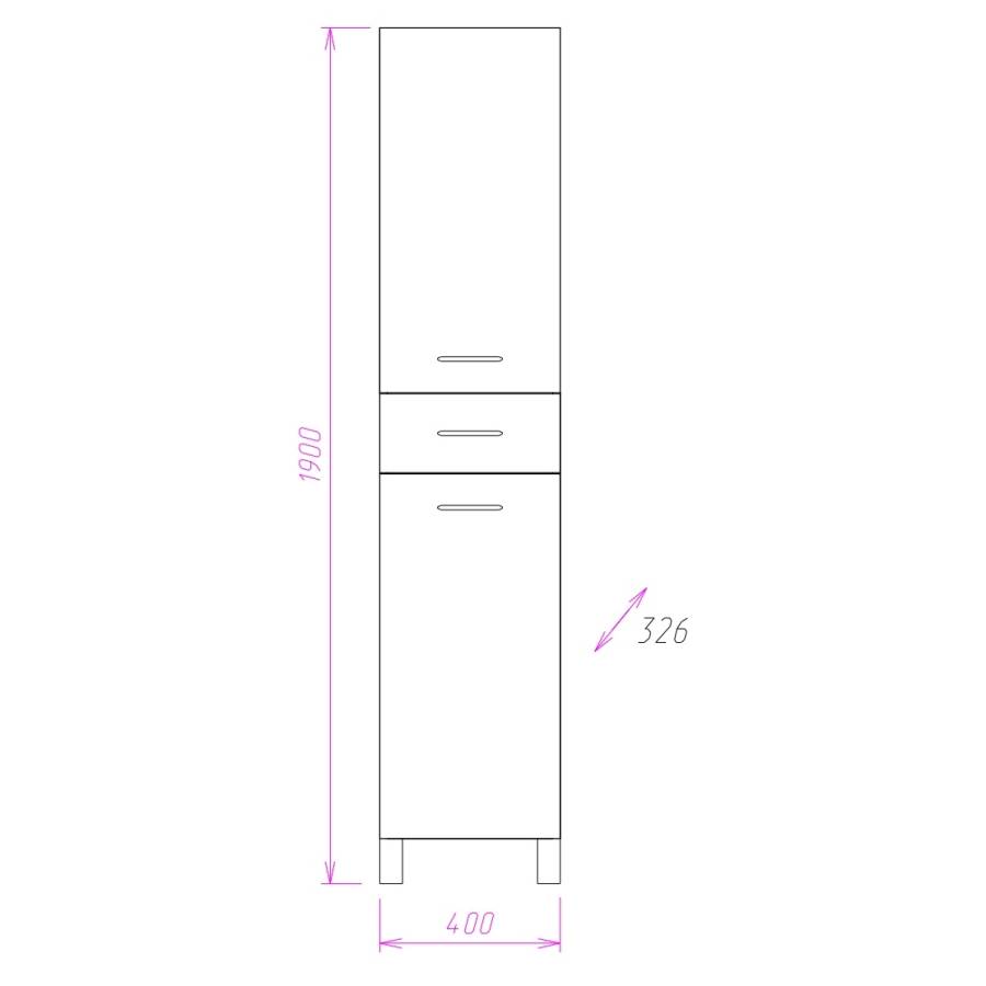 Размер пенала с ножками: 40х33х190 см.