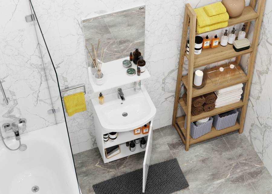 Раковина в комплекте - Santeri Акватон 52, изготовлена из 100% санитарного фарфора и отличается безупречной белизной.