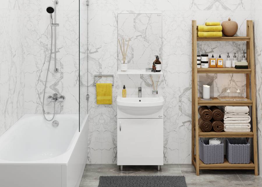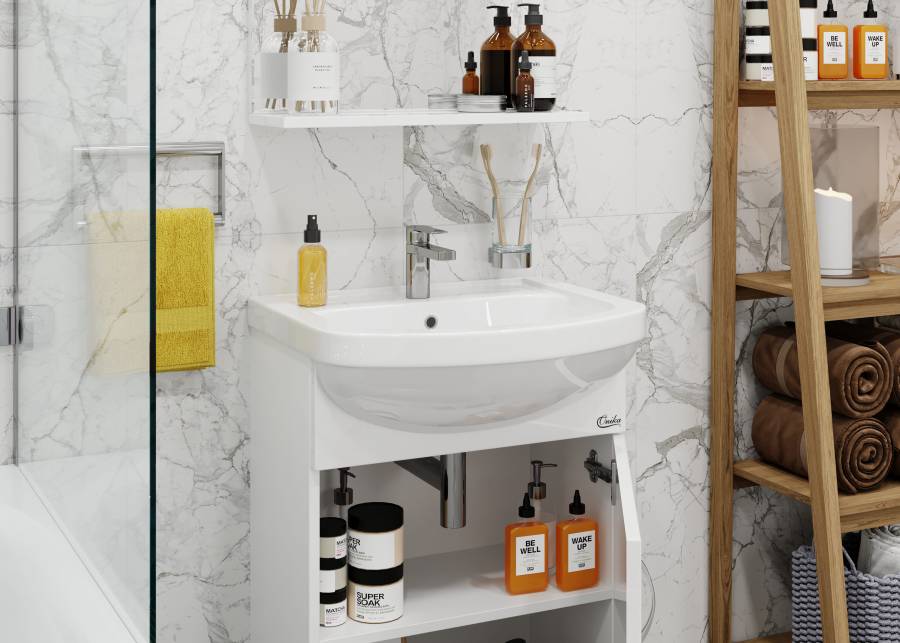 Компактные габариты позволяют грамотно организовать небольшой санузел, а простой белый глянец гармонично впишется в интерьер любой ванной комнаты.