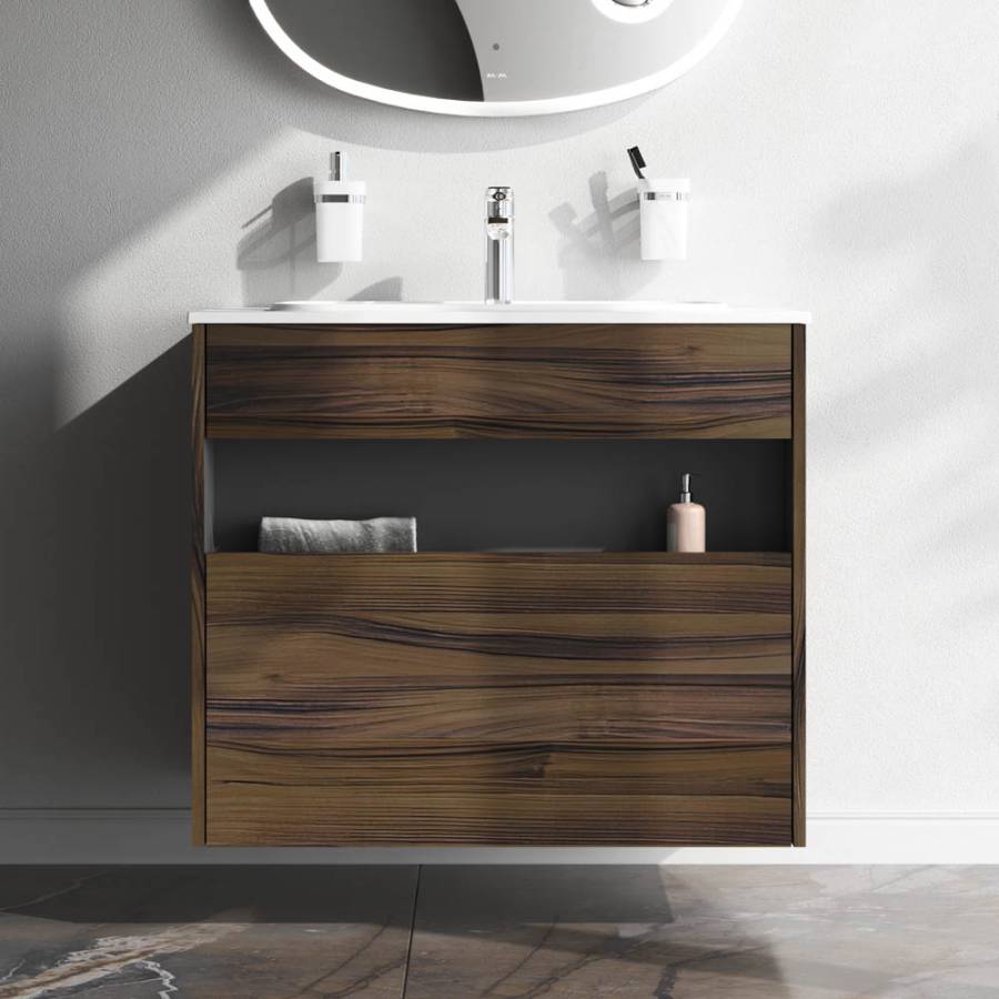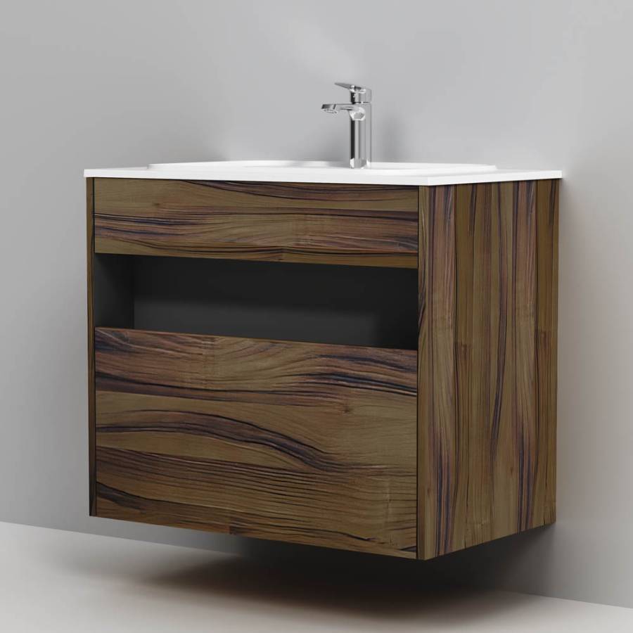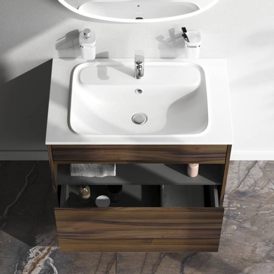 Удобный выдвижной ящик и вместительная открытая ниша позволяют хранить все необходимые средства под рукой. Невероятно мягкое открытие и закрытие благодаря направляющим скрытого монтажа с системой soft close._x000D_