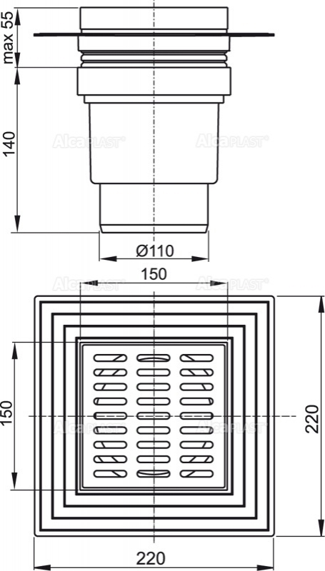 Корпус сливного трапа с прямым подключением к стоку Ø110 мм$ Горловина сливного трапа 150×150 мм; Решетка из нержавеющей стали; Мокрый гидрозатвор; Воротник с 2-х уровневой изоляцией, внутреннее отверстие Ø150 мм; Комплект прокладок; |