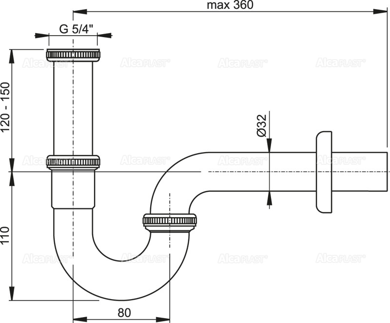 Корпус сифона; Резьбовое соединение 5/4″ для подключения слива раковины или биде; Обрамление металлическое |