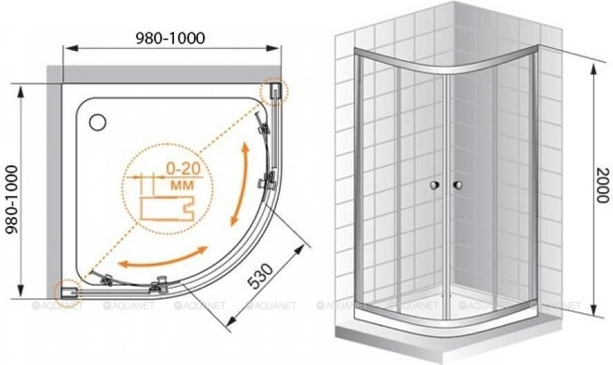 Напольный, на поддон, пристенный в угол |