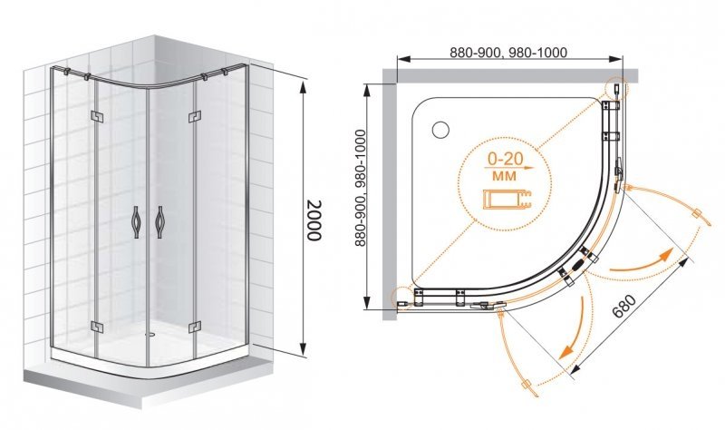 Напольный, на поддон, пристенный в угол |