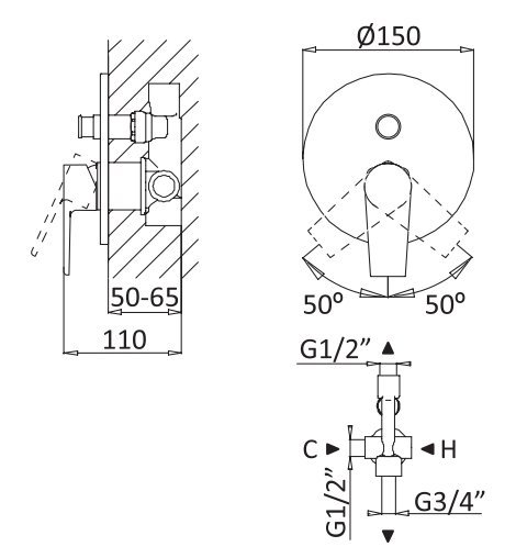 Скрытая монтажная часть, переключатель потоков |