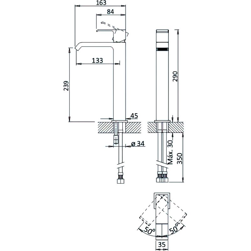 Высота излива см./мм.