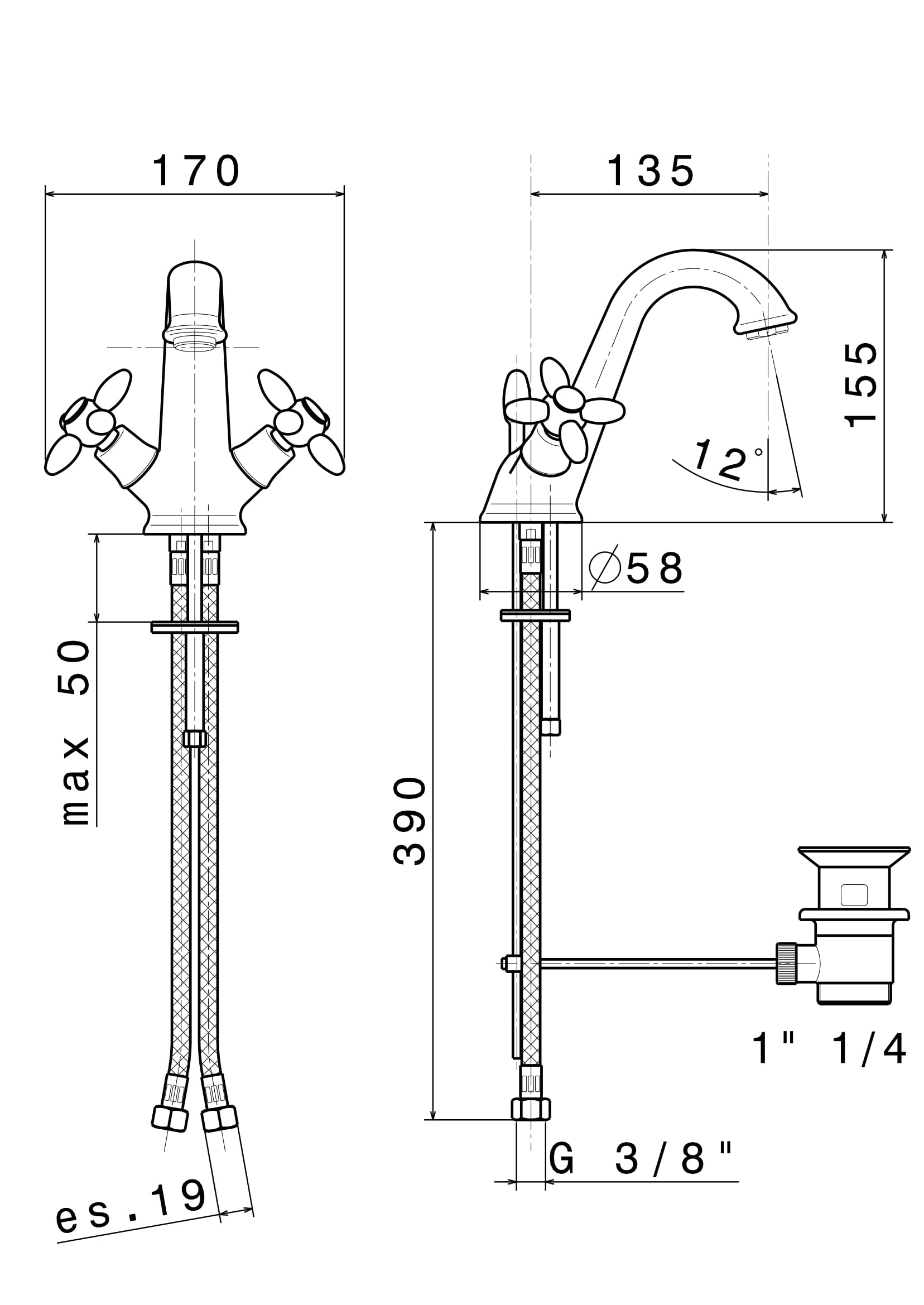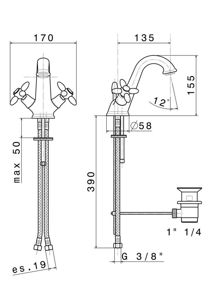 Аэратор, Гибкая подводка, Донный клапан, Крепления |