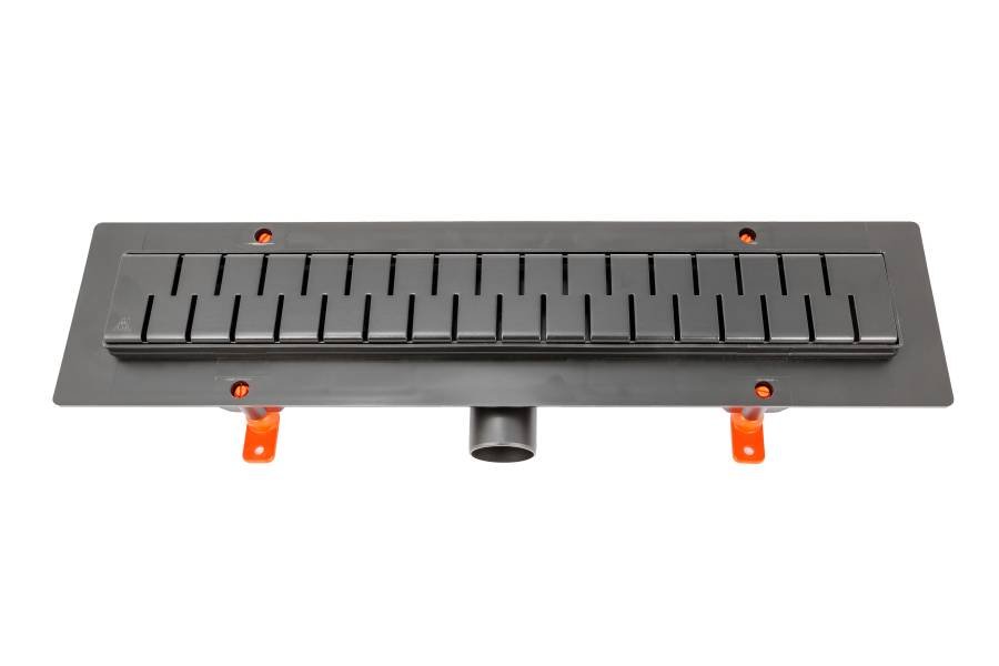 Нижняя часть изготовлена из полипропилена, рамка желоба и решетка - из нержавеющей стали DIN 1.4301 AISI 304, с возможностью