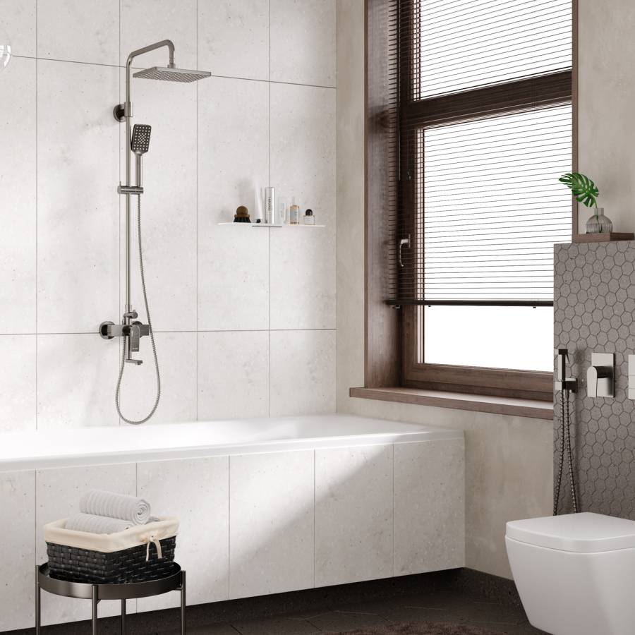 Душевая насадка 260x188 мм, 116 форсунок, ABS-пластик, Стойка для душа, 24 мм регулируемая по высоте, Лейка 3-функциональная с системой защиты от известковых отложений, Шланг металлический 1500 мм, подключение к лейке, Керамический картридж 35мм, Sedal (Испания), Встроенный пластиковый аэратор Neoperl HONEYCOMB (Германия) с регулируемым углом наклона струи, Керамический поворотный переключатель, Набор для монтажа |