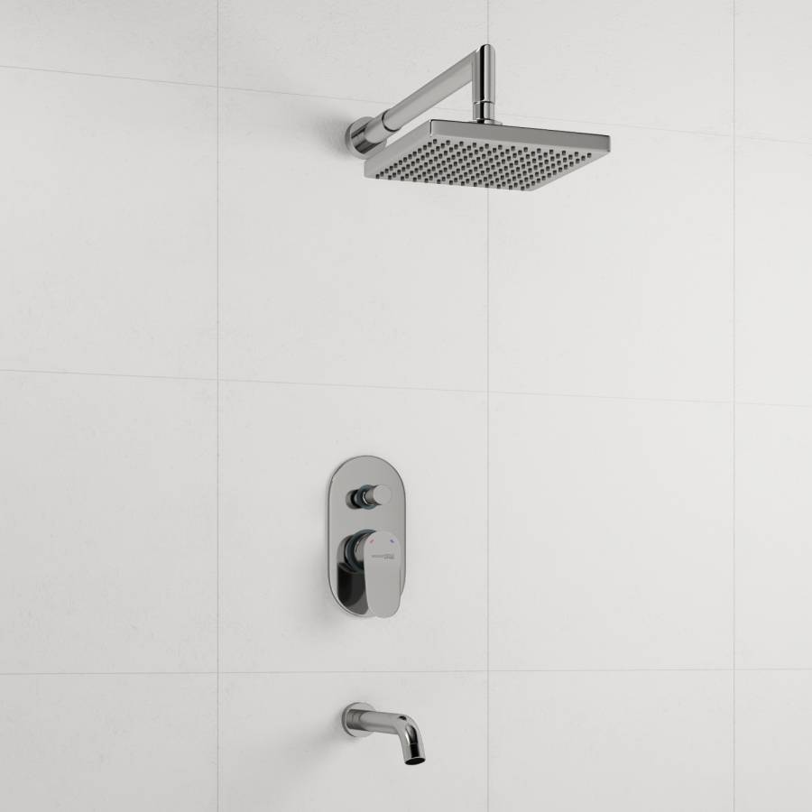 Смеситель для ванны и душа Donau 5361, Верхняя душевая насадка A028, Верхний излив для душа A019, Настенный излив для ванны A018 |