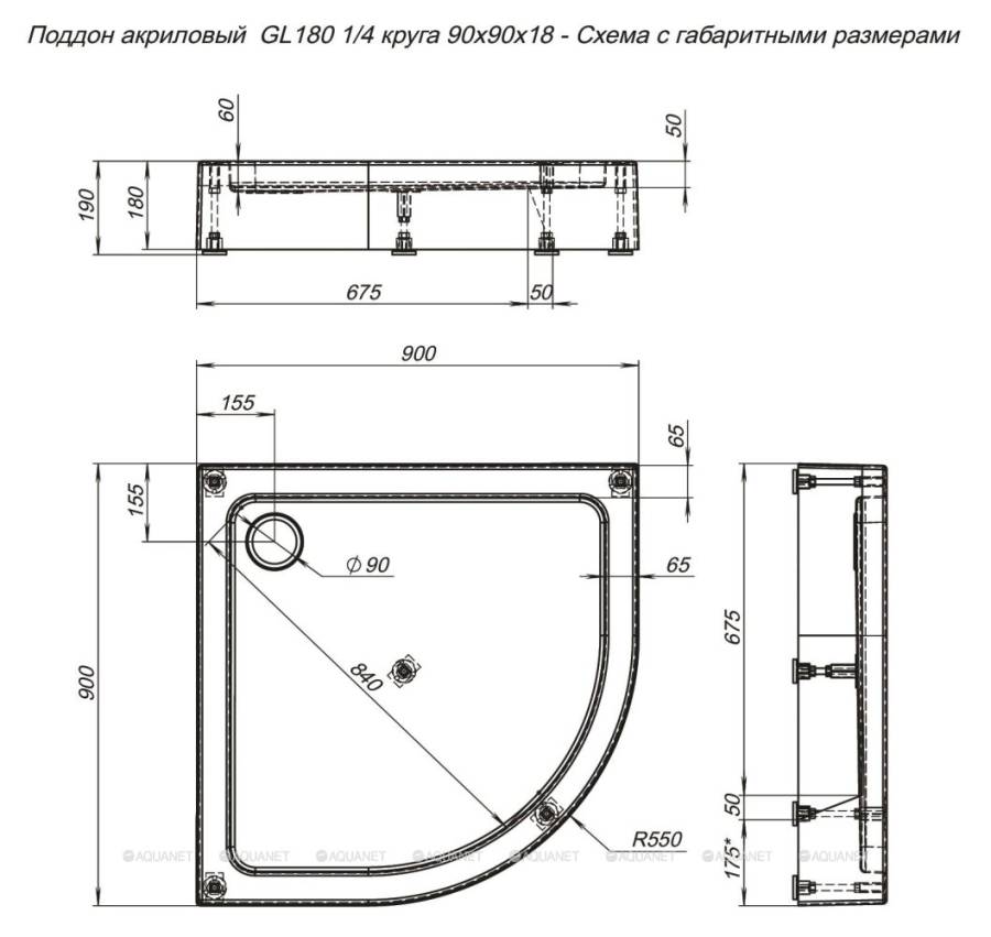 Поддон;Ножки;Сифон;Комплект крепления |