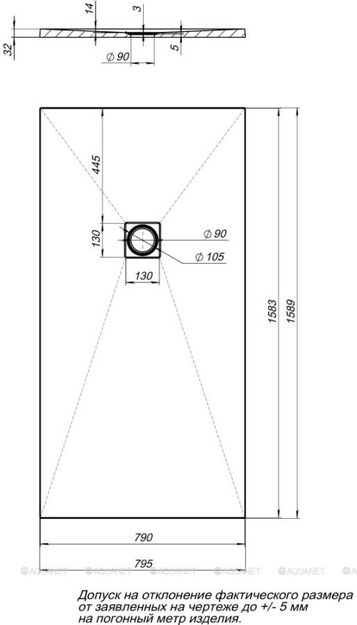 Поддон;Решетка слива из нержавеющей стали |