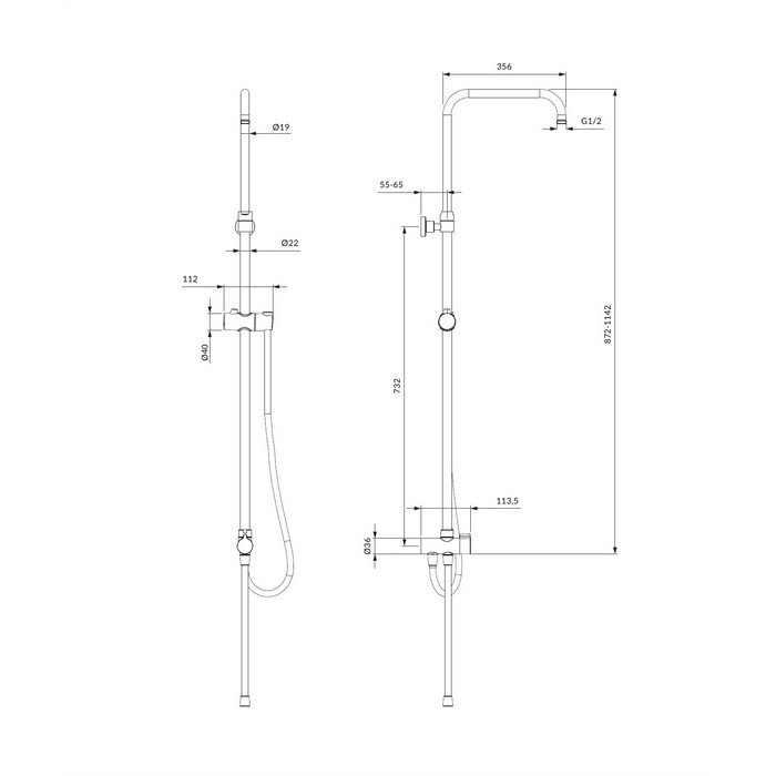 Душевая штанга, Душевой шланг, Кронштейн для верхнего душа |