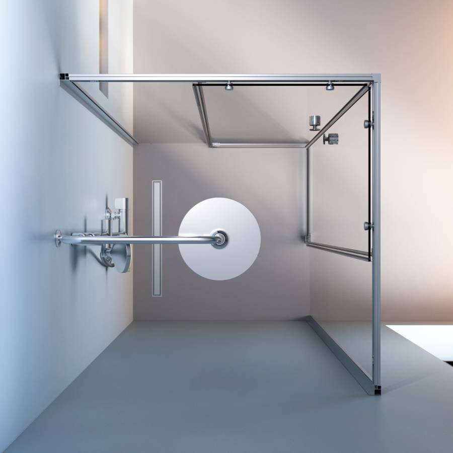 Прочная конструкция с надежными роликами увеличенного диаметра для плавного хоДа двери и закаленным стеклом. Толщина дверей – 6 мм. стенок – 4 мм. Беспрецедентно стойкое покрытие: надежный алюминиевый профиль окрашен методом порошкового нанесения при высокой температуре благоДаря чему краска ложится на профиль идеально ровно а также проникает в структуру самого металла.