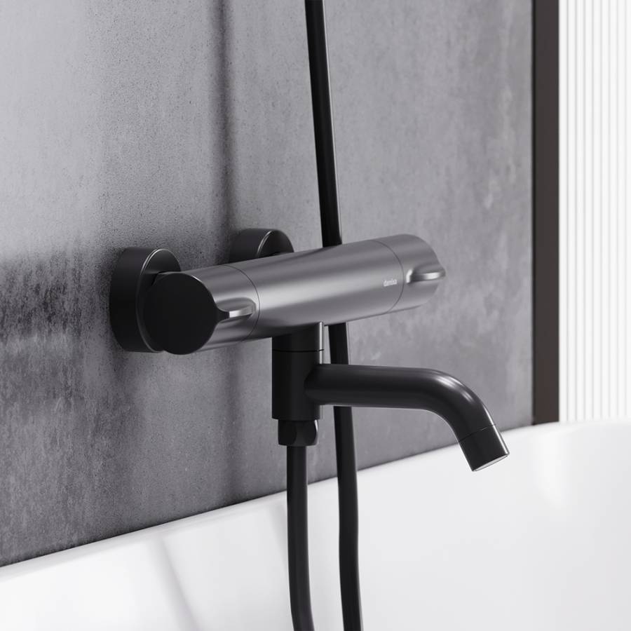 Максимальная безопасность: термостатический картридж 35 мм обеспечивает точную настройку температуры и напора воды. Специальная кнопка-предохранитель не позволяет случайно повысить температуру воды. Выставляйте комфортные для вас параметры легким поворотом правой ручки смесителя. Переключайте потоки воды между лейкой и изливом - поворотом излива.