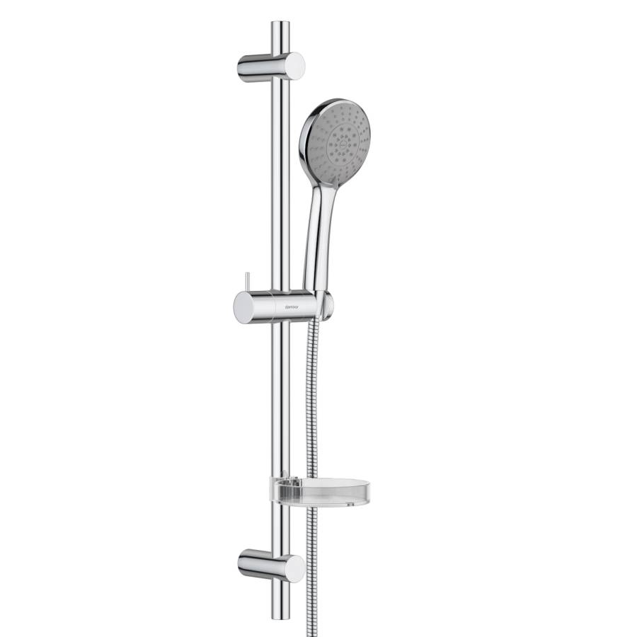 В душевую систему встроена круглая полочка с бортами для хранения средств для ухоДа.