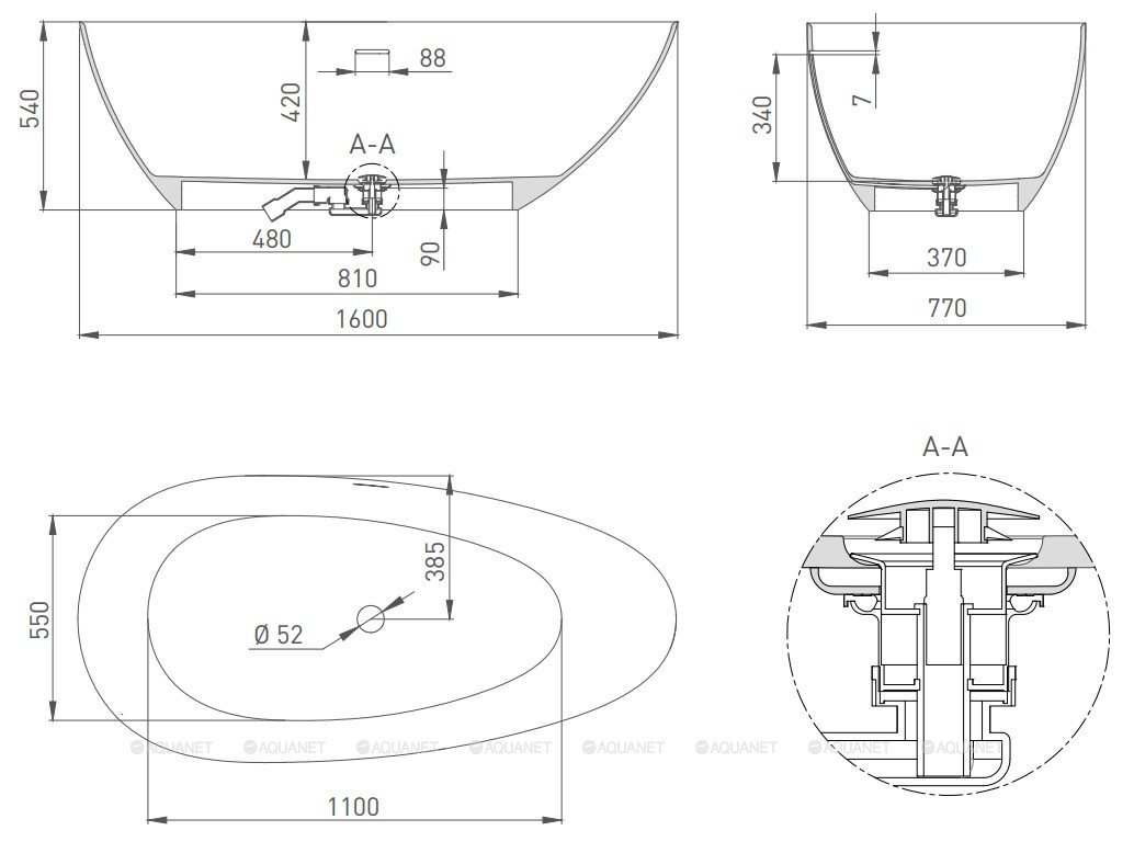 Установка данной ванны требует подиума высотой минимум 5 см или углубление пола минимум 5 см.