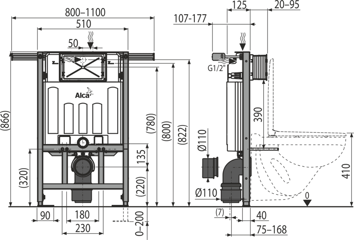 Подходит для установки пневматического или сенсорного смыва.