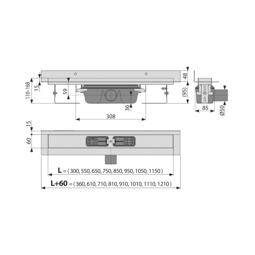 Водоотводящий желоб с сифоном - 1 шт. Монтажный набор - 1 шт. Самоклеящиеся гидроизоляционные ленты - 1 шт. Защитная пленка для воротника желоба и впускного отверстия сифона - 1 шт. Монтажный вкладыш для защиты лотка желоба - 1 шт. Монтажный набор для крепления регулируемых ножек - 1 шт. Инструкция - 1 шт. |