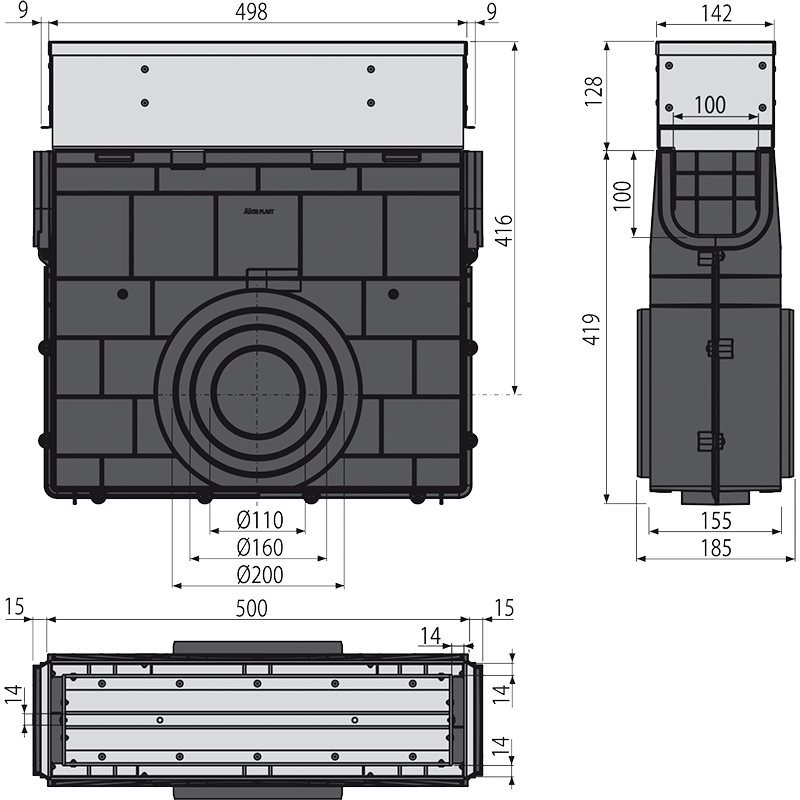 Корпус дренажного канала; Оцинкованная ревизионная надставка |