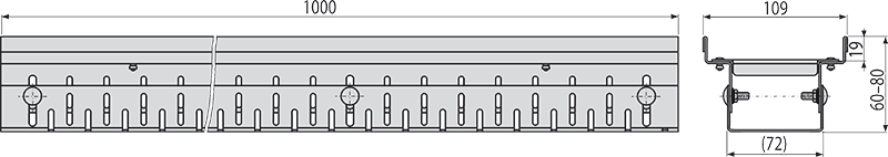 Тело желоба регулируется по высоте 60–80 мм.