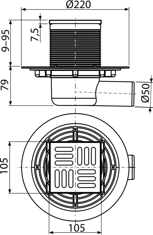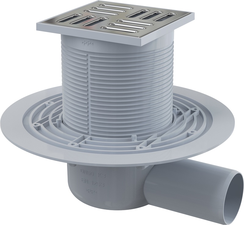 Корпус сливного трапа с боковым подключением к стоку - 1 шт. Горловина сливного трапа 105×105 мм - 1 шт. Решетка из нержавеющей стали - 1 шт. Гидрозатвор – мокрый - 1 шт. Комплект прокладок - 1 шт. Инструкция - 1 шт. |