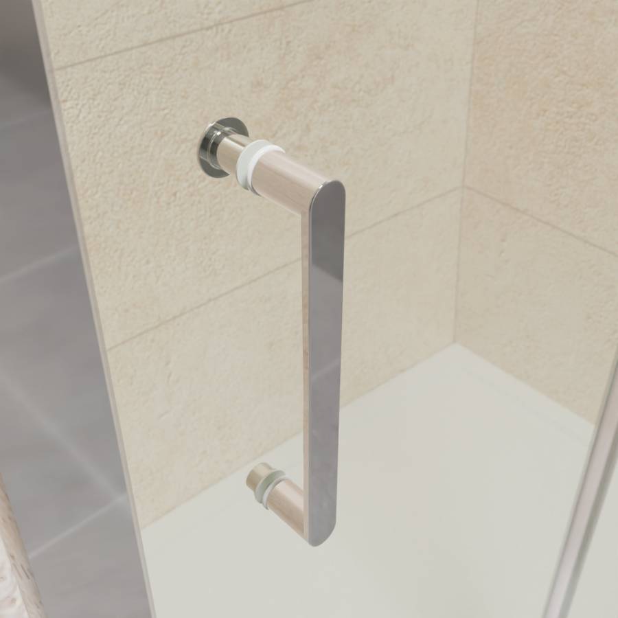 Толщина стекла двери составляет 6 мм и обладает высокой прочностью. Материал стекла выбран прозрачный, что позволяет сохранить пространственную свободу и прозрачность в ванной комнате. Цвет профиля двери выполнен в хромированном исполнении и добавляет глянцевый блеск интерьеру ванны.