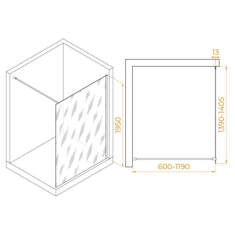 Использование регулируемого профиля позволяет настроить высоту перегородки под свой размер, создав комфортное душевое пространство. Высота перегородки составляет 195 см, что является оптимальным параметром для большинства пользователей.