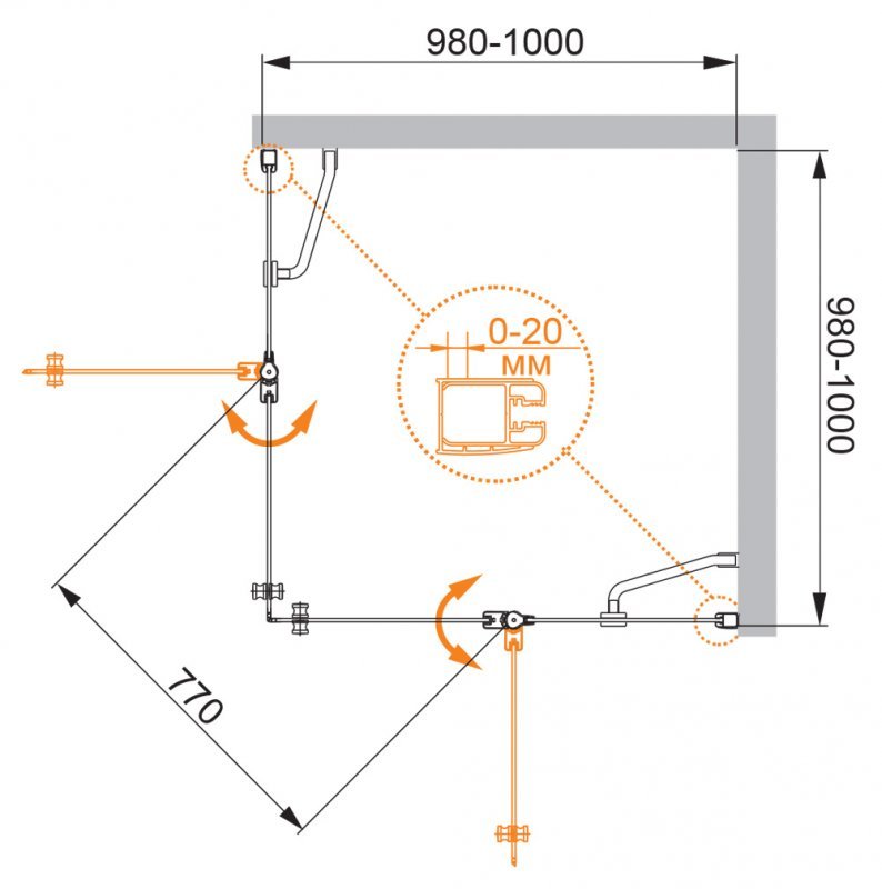 Напольный, на поддон, пристенный в угол |