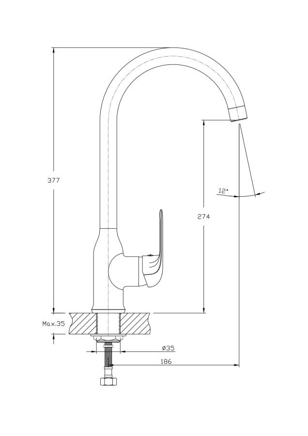 Высота излива см./мм.