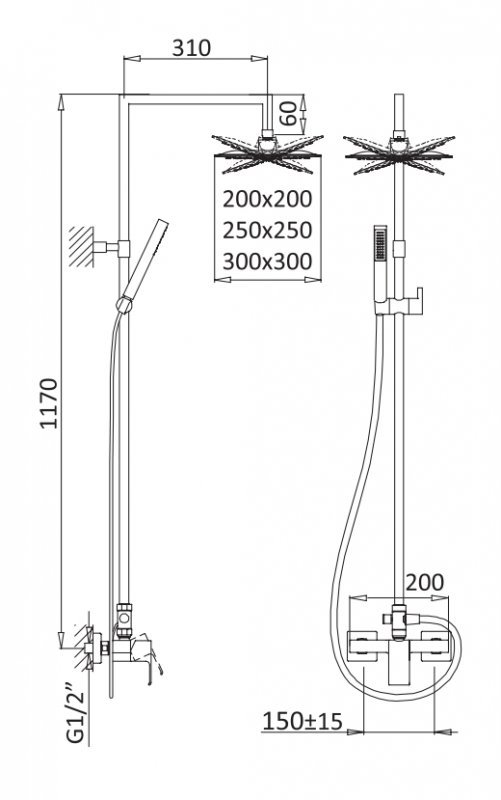 Душевой шланг, душевая лейка, переключатель потоков, держатель для душа |